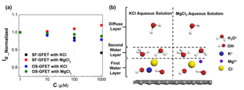 圖5.(a) SF-GFET在KCl和MgCl