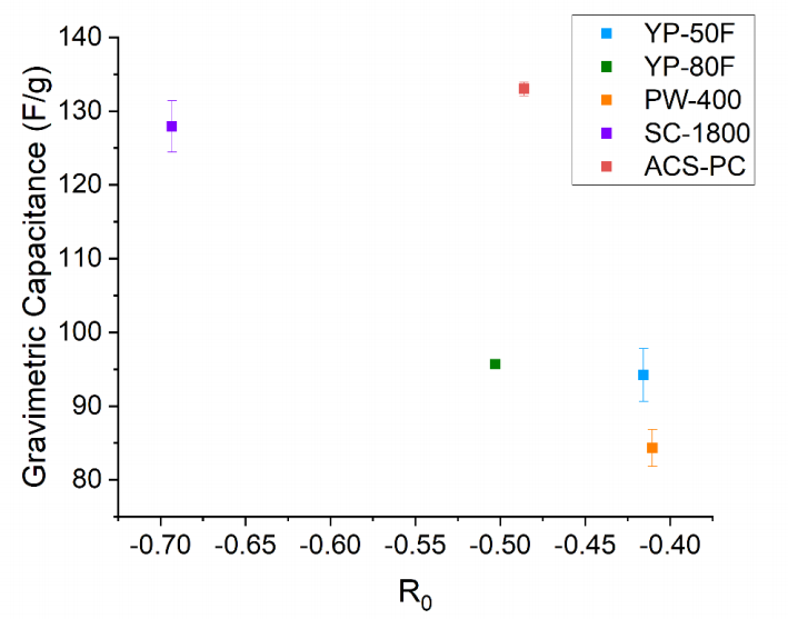 圖 S24:碳材料重量比電容與指數(shù)擬合參數(shù)R0的關(guān)系分析