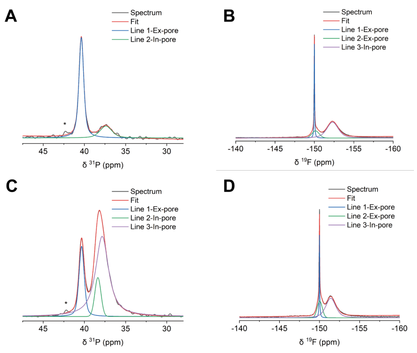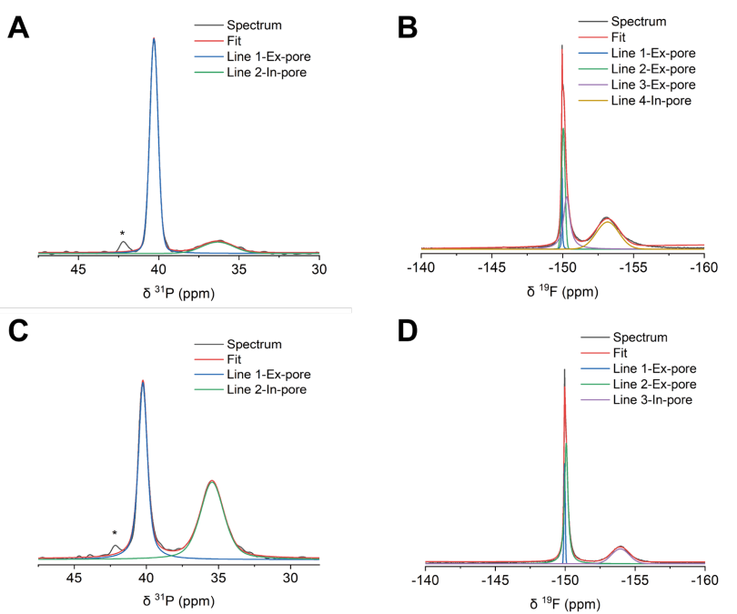 非原位MAS NMR的分峰處理展示了電極表面離子吸附的電荷分布特征,通過³¹P與¹?F核磁共振譜圖的解卷積,可量化不同電壓下電極對陰陽離子的選擇性吸附行為。
