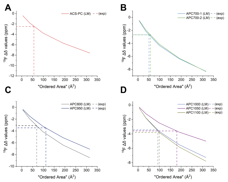 基于Warren-Bodenstein干涉函數(shù)或Debye干涉函數(shù),模擬芳香分子在碳材料表面的有序排列模式,建立理論Δδ值與有序區(qū)域面積的數(shù)學(xué)關(guān)系。