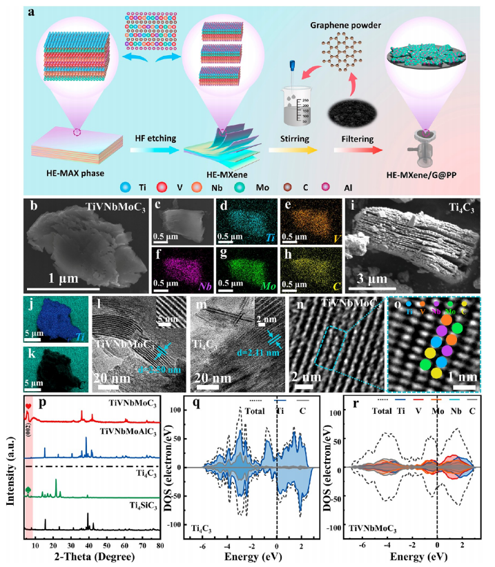 注:圖注中所有表征手段(如SEM、EDS、XRD等)均基于文獻中通用的材料分析技術(shù),結(jié)合高熵MXene的特性驗證其結(jié)構(gòu)與性能優(yōu)勢。