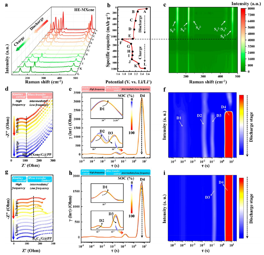原位拉曼驗證:實時觀測到多硫化物在HE-MXene表面的快速氧化還原反應(yīng)。