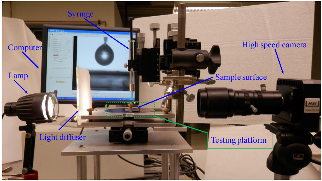 圖2.2. 用于接觸角動力學(xué)(CAK)測量的實(shí)驗(yàn)裝置照片。