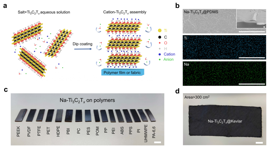 圖1 | 鹽輔助組裝Ti?C?T?納米片在聚合物基板上的應用