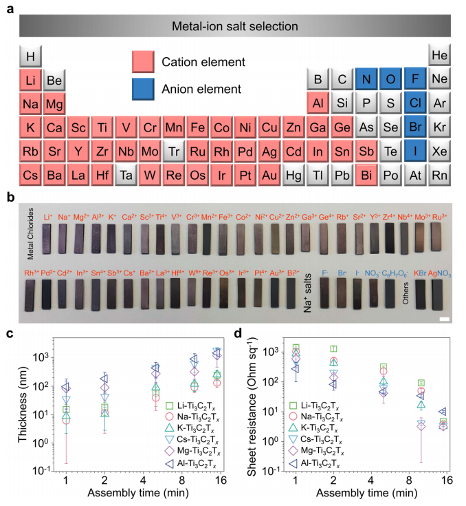 該研究首次提出了一種鹽輔助組裝(SAA)方法,用于在各種聚合物基板上沉積MXene納米片。這一方法具有以下創新特性: