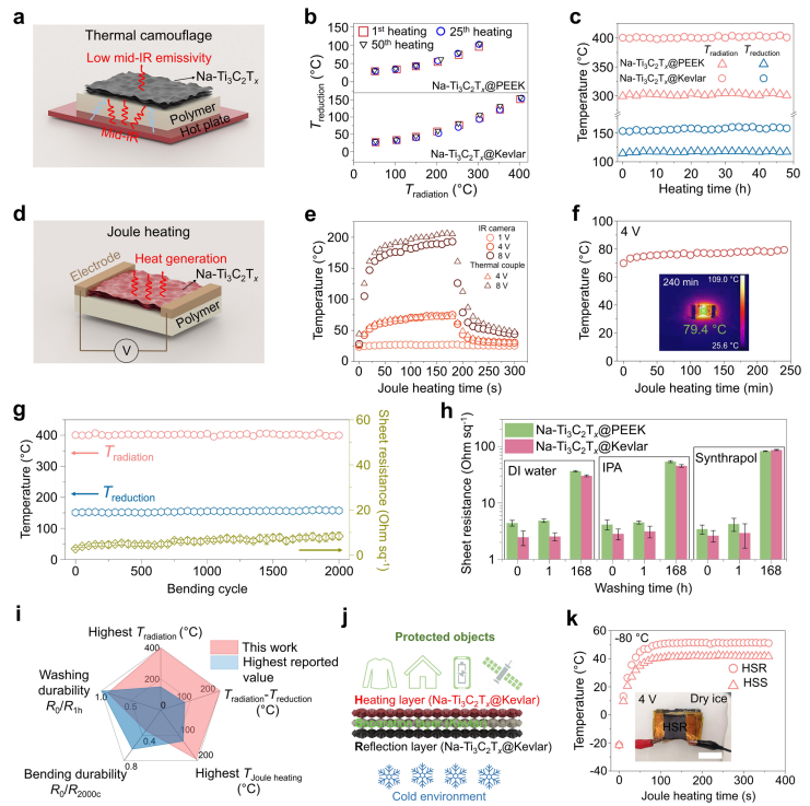 圖4 | Na-Ti?C?T?涂層在高性能聚合物上的熱管理應用