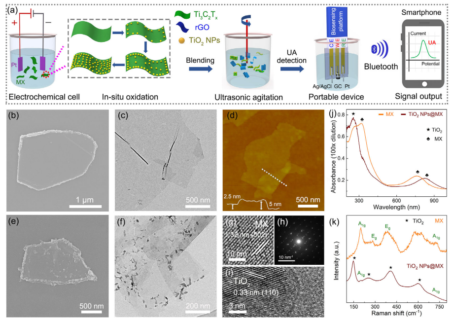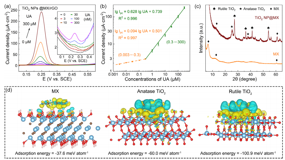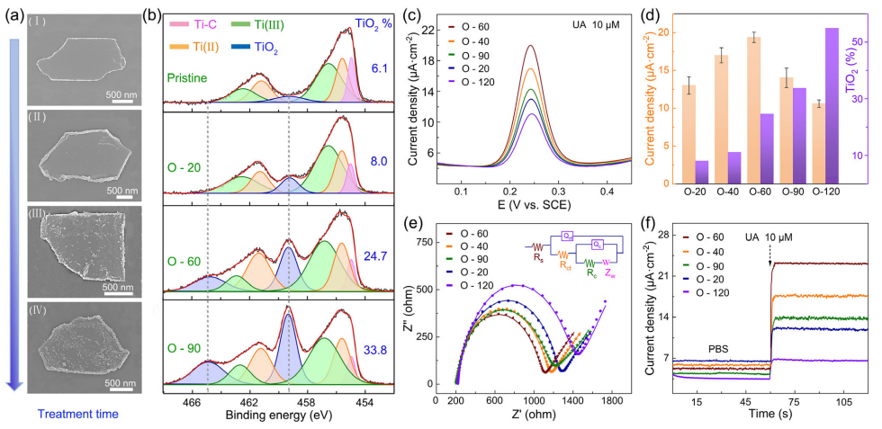 | 30 min | 21 wt% | DPV響應電流達到峰值(圖3c) | 形成最佳TiO?/MX界面,協同提升UA氧化動力學10 |