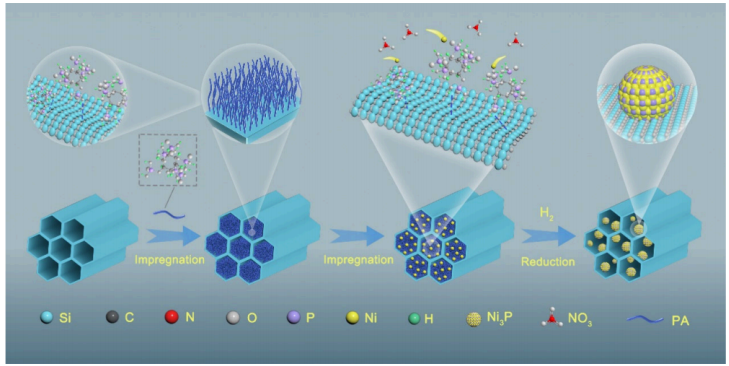 PA修飾和Ni?P形成‌未破壞SBA-15介孔框架‌——這是實現"納米限域效應"的前提。