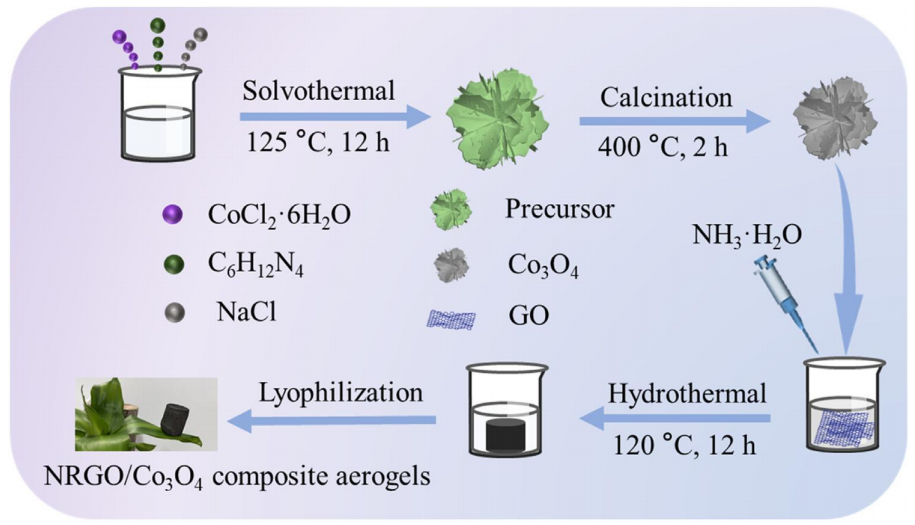 圖1. NRGO/Co3O4復合氣凝膠的制備流程示意圖