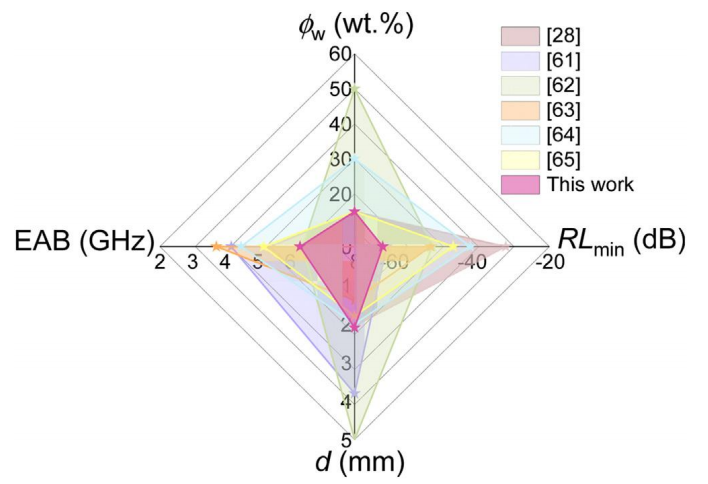 ‌清晰地定位‌ 本工作在吸波材料研究領域的 ‌先進性和競爭力‌,表明其性能指標達到或超越了現有技術水平。