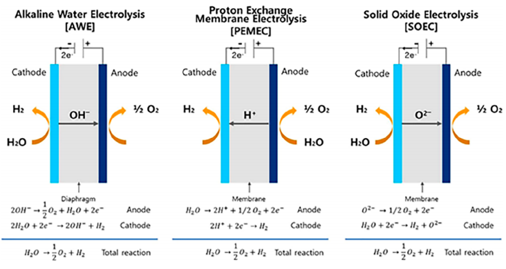 圖1. 三種氫氣生產技術的工作原理示意圖