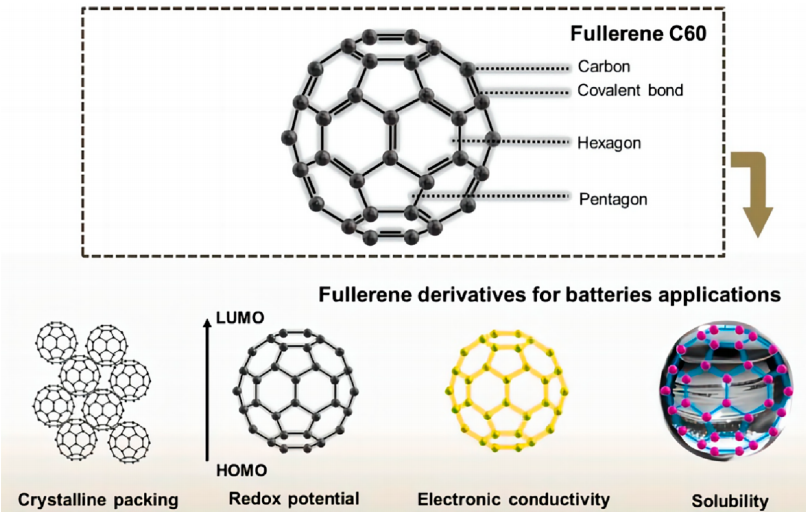 圖5. 富勒烯結構與富勒烯衍生物特性示意圖。