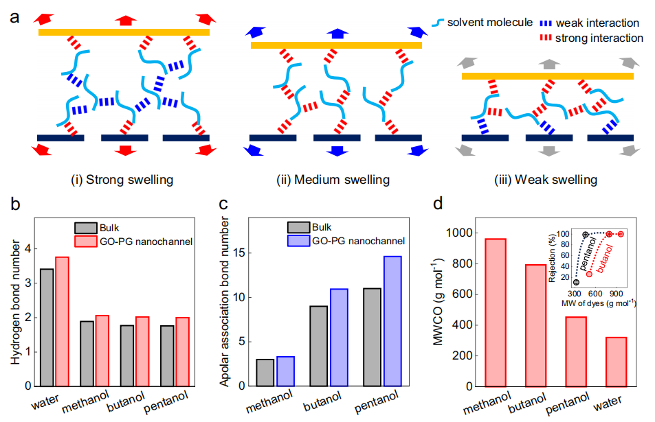 圖5 | GO-PG納米通道中的溶劑-溶劑相互作用‌‌