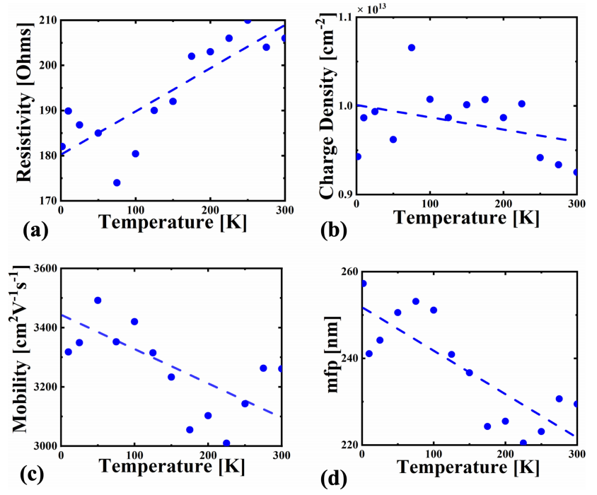 關鍵提示:相較于SEG(圖3),QFSG參數無顯著溫度依賴性;室溫下電荷密度與遷移率與SEG相當