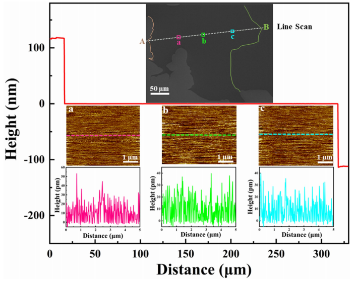 · 器件兼容性:大面積均勻覆蓋(80%)和原子級平坦區域(0.5 mm × 0.3 mm)滿足集成電路工藝需求。