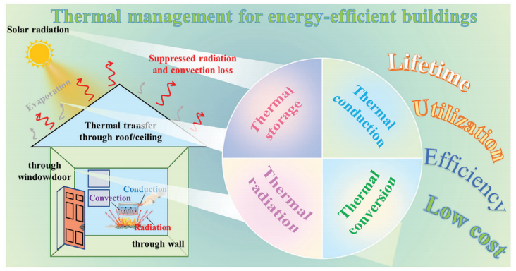 隨著生活水平的提高和全球人口的增加,建筑物的能源需求將持續增長。在發達國家,建筑物的能源消耗占總能源消耗的30%至40%,超過了交通和工業的能源消耗。為了滿足全球能源需求的增長和提供舒適的居住環境,現代節能建筑主要通過消除電磁(EM)干擾和污染、控制熱傳遞以及促進陽光的采集來實現。具體來說,主要通過使用微波屏蔽材料、進行熱管理以及安裝智能窗戶來實現這些目標。本文綜述了節能建筑領域在寬帶屏蔽、熱管理和智能窗戶方面的最新進展,從材料、機制和場景等方面進行了系統總結。此外,還討論了存在的主要瓶頸和問題,并進一步突出了潛在的研究機會。