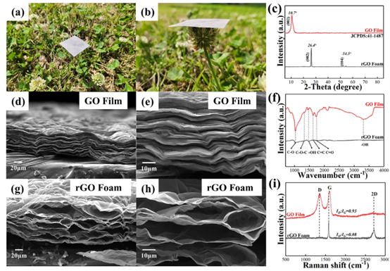 (i) GO薄膜與rGO泡沫的拉曼光譜對比。