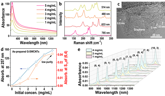 通過兩步分散法實現了SWCNTs溶液濃度突破(1 mg/mL),結合凝膠色譜技術將單手性物種分離產率提升1個數量級。