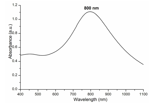 紫外-可見-近紅外光消光譜呈單峰,位置在 700~800 nm 之間。