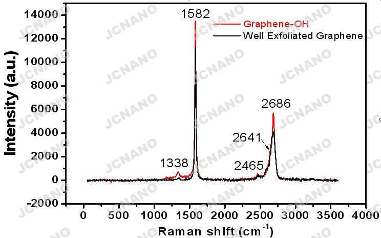 Figure 1 Raman spectra of hydroxyl groups modified graphene (note: most of them are single-layered) and well-exfoliated graphene sheets.
