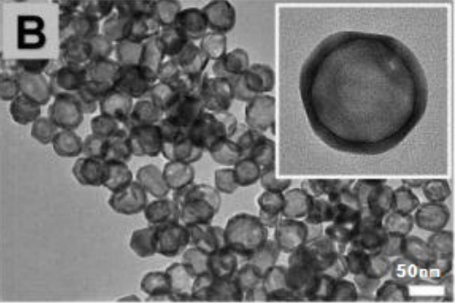 電鏡尺寸(Au內(nèi)核直徑) 約50nm,殼壁厚約5nm