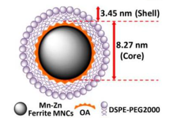 PEG化磁性錳鋅鐵氧體納米晶結構示意圖