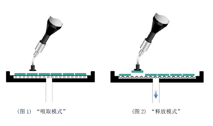 請注意,只有在實際設備釋放程中才需要對托盤底面應用到真空處理。在膠表面放置設備時是不用抽真空的。