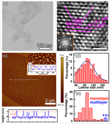 超高的單層率95%,半導體相(純2H相),表面清潔不含雜質離子,尺寸均一,可抽濾成膜,可分散在多種溶劑中,可大規(guī)模制備。
