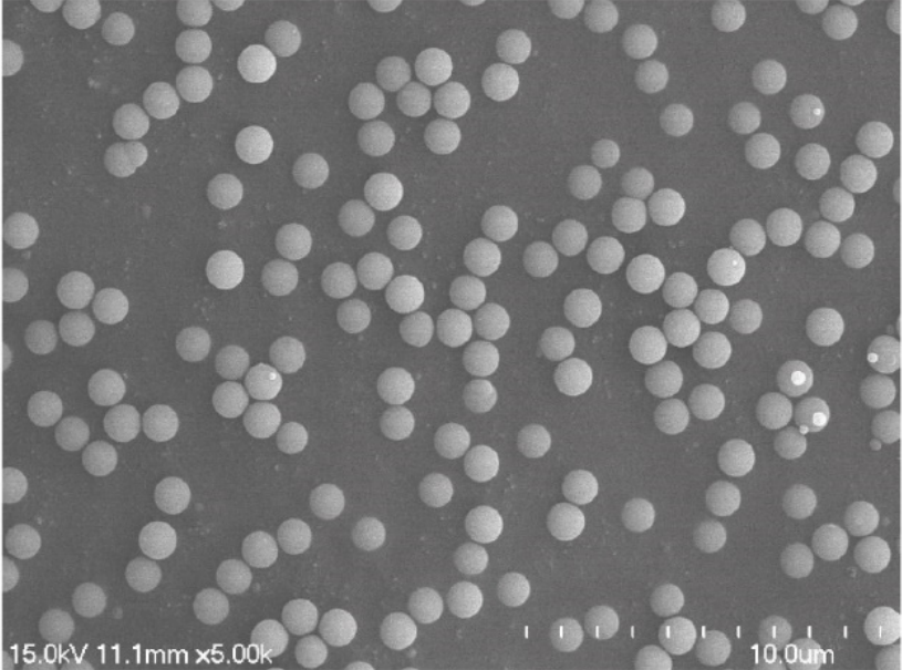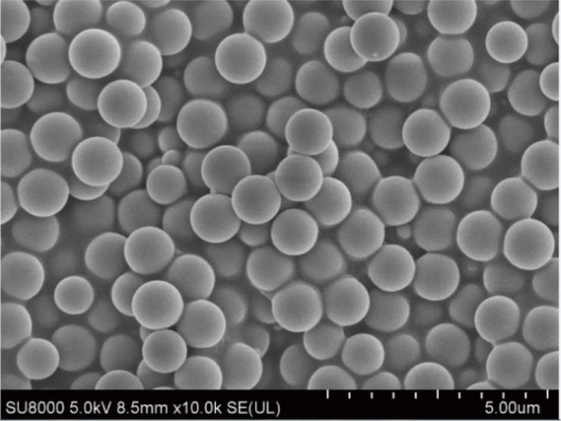 亞微米硅球純度高、球形率高、球體光滑致密、比表面低、分散性和流動性好、粒度均勻、分布窄。廣泛應用于CCL、EMC、電子膠、塑料、薄膜、拋光、特種陶瓷、油漆涂料和化妝品等領域。